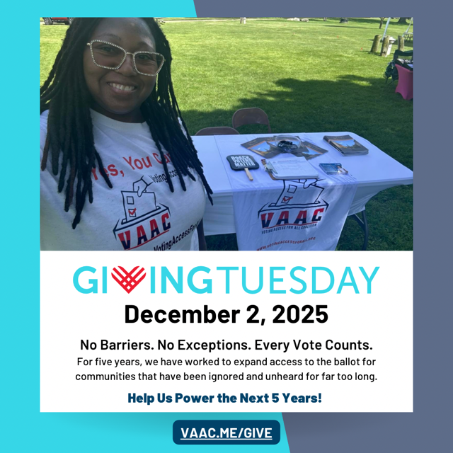 This Giving Tuesday, VAAC is raising $25,000 to keep voter education, outreach, and civic leadership moving forward, especially for communities too often shut out of democracy.