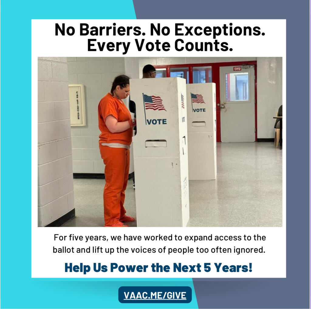 In these final days of the year, we need your support to sustain voting access and strengthen civic power in the communities facing the greatest barriers, ensuring justice impacted communities are not left behind as we approach the 2026 midterms.