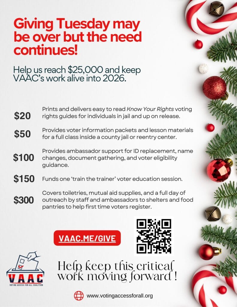 Gracias a todos los que apoyaron nuestra labor durante el Giving Tuesday. Su generosidad impulsa nuestra misión y fortalece a nuestras comunidades. Agradecemos profundamente su confianza en la importancia del acceso cívico para todos.