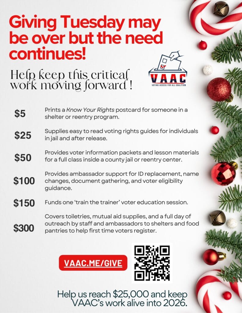 Gracias a todos los que apoyaron nuestra labor durante el Giving Tuesday. Su generosidad impulsa nuestra misión y fortalece a nuestras comunidades. Agradecemos profundamente su confianza en la importancia del acceso cívico para todos.