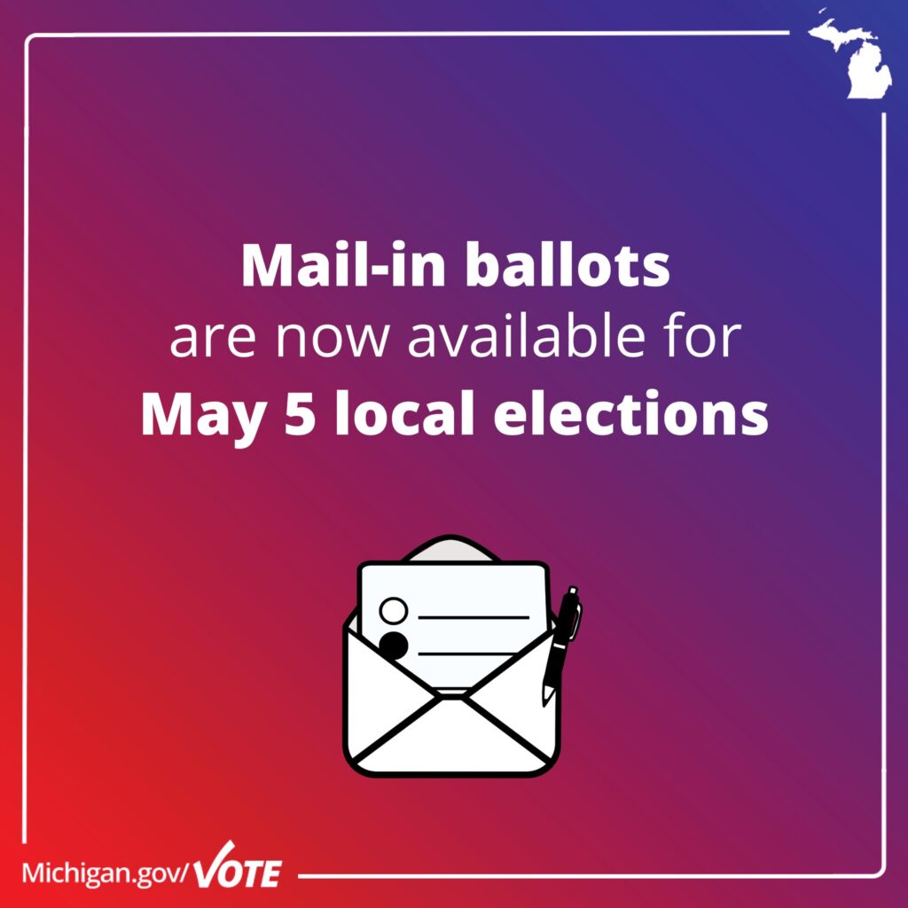 *If you want to vote from home, we recommend you request your ballot no later than April 14 to give yourself enough time to receive your ballot, complete it, and return it to your city or township clerk by 8 p.m. on Election Day, May 5.
