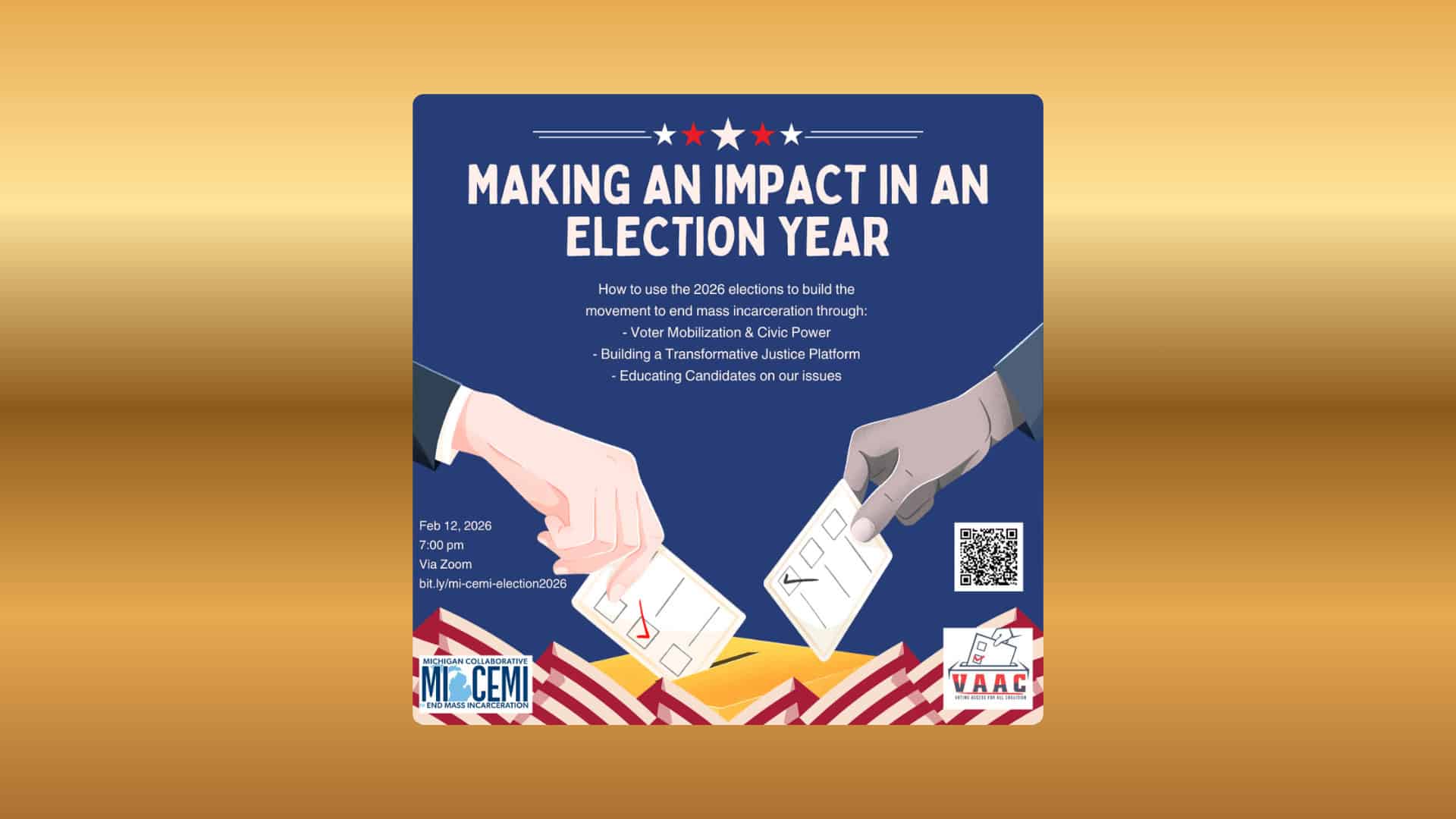 The 2026 election cycle will shape decisions about incarceration, public safety, and reentry for years to come. VAAC and MI-CEMI are hosting a virtual conversation on February 12 about how communities can organize, build civic power, and influence policy in an election year. Learn more about the discussion and how to participate.